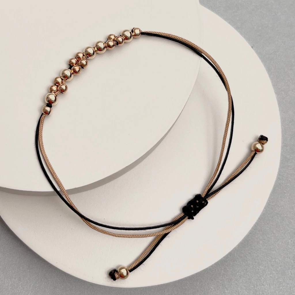 Pulseras con bolitas de golfilled e hilos de seda en 2 colores, cualquier color puede ser sin broche o con broche de golfilled con diferencia de precio,