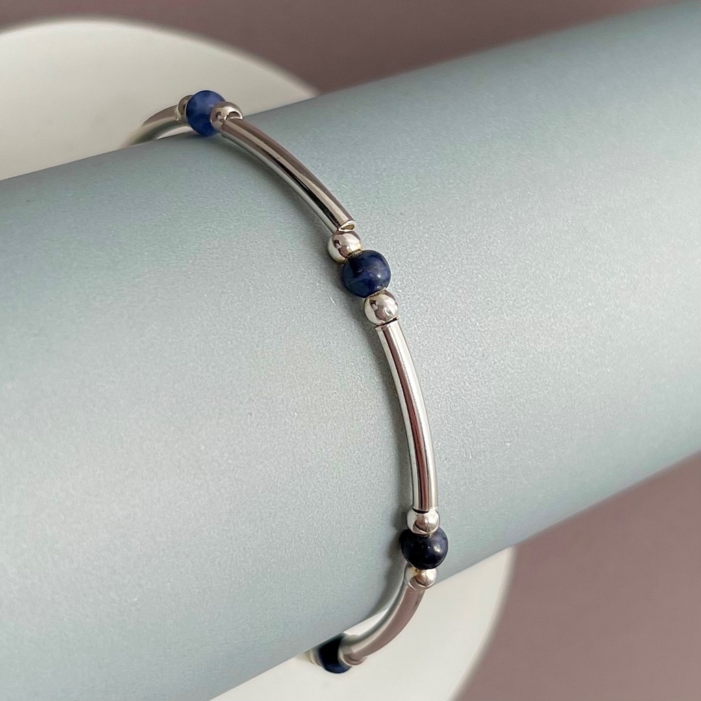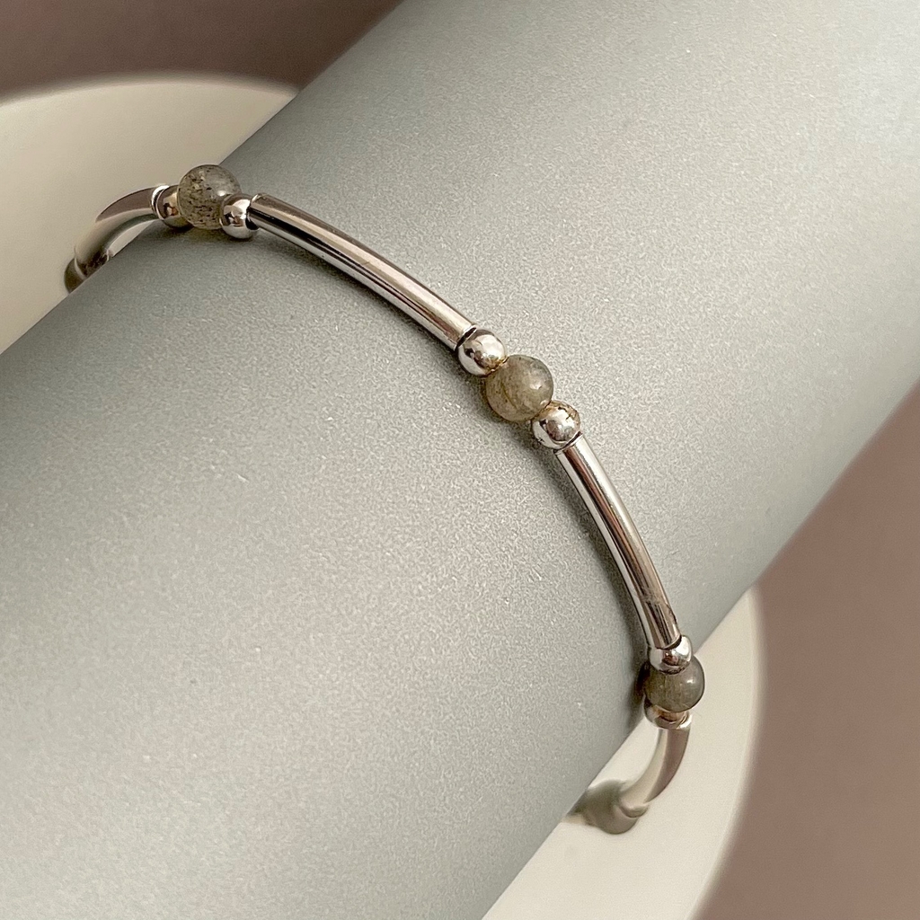 Pulseras confeccionadas con tubos de plata 925 con Piedras naturales